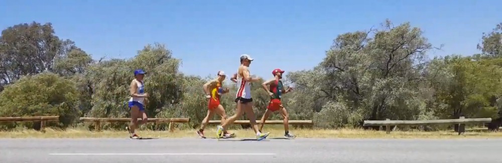 Гонка получилась очень интересная, исход был неясен до последних метров. Со старта вперед ушло несколько ходоков, я оставался примерно 8-10-м первые два км. Нормундс из Латвии еще прибавил и начал уходить. Я не пошел и начал отставать. У нас устоялась группа из 4-х человек: я, мексиканец, испанец и колумбиец.